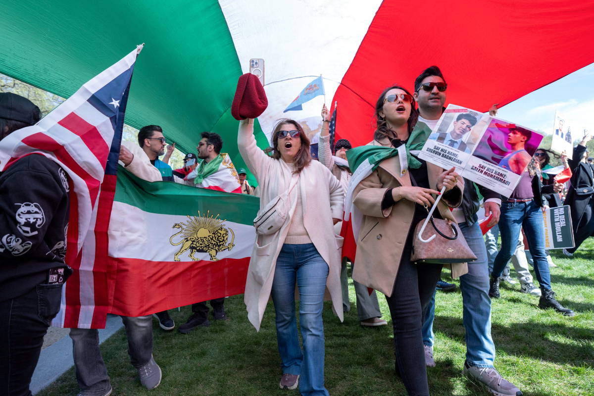 Иранские эмигранты собрались и провели марш в Вашингтоне в воскресенье в поддержку смены режима в Иране.