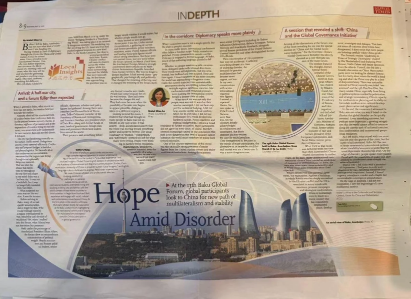 Автором материала является Мейбл Мяо Лу - соучредитель и генеральный секретарь Центра по Китаю и глобализации (CCG), которая участвовала в Бакинском форуме в этом году.