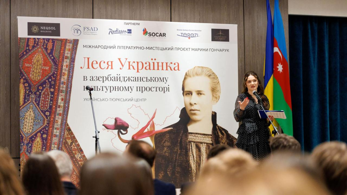Как отметила автор и куратор проекта «Леся Украинка в азербайджанском культурном пространстве», директор Украинско-тюркского центра Марына Гончарук, проект демонстрирует взаимосвязь культурной дипломатии и ее влияние на гуманитарную поддержку Украины. По ее словам, впервые в рамках одного мероприятия системно представлено, как фигура Леси Украинки интегрирована в культурное пространство Азербайджана и как это гуманитарное измерение трансформировалось в реальные шаги по поддержке Украины. Речь идет, в частности, о влиянии культурной дипломатии на гуманитарную помощь Азербайджана, направленную на восстановление украинских городов и социальной инфраструктуры.
