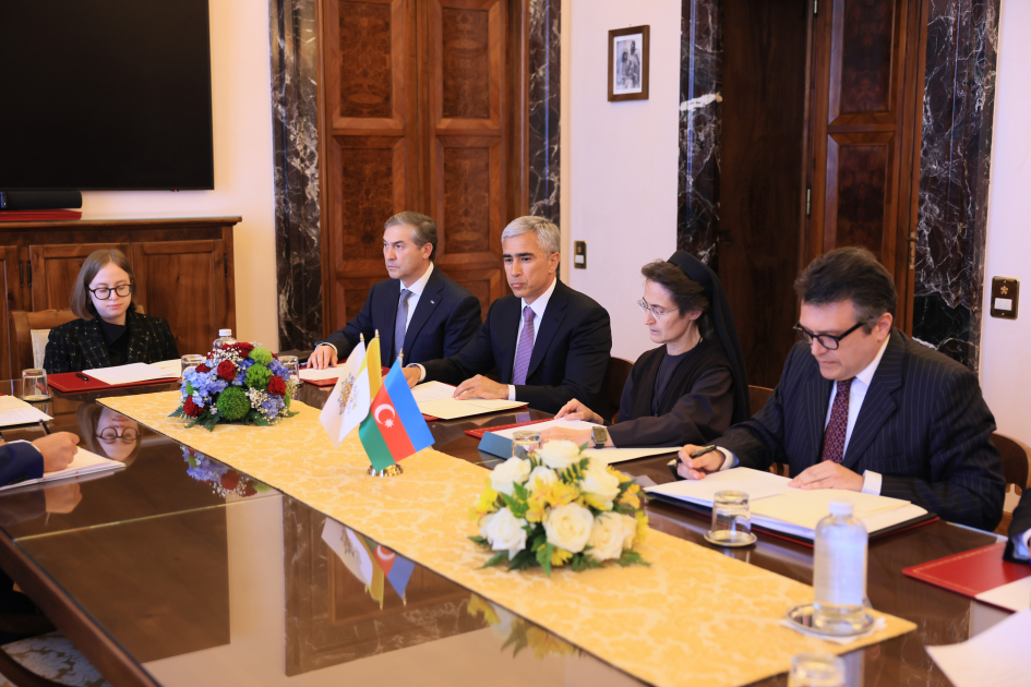 Как сообщает БР, на встрече, состоявшейся в Ватикане, документ подписали помощник Президента Азербайджанской Республики, исполнительный директор Фонда Гейдара Алиева Анар Алакбаров и президент губернаторства города-государства Ватикан монахиня Раффаэлла Петрини.