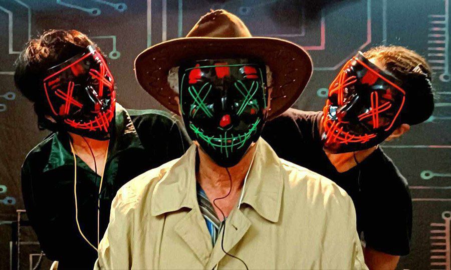 Неоновые маски, появляющиеся в начале спектакля, создают эффект отчуждения и одновременно вводят зрителя в состояние неопределенности - мир, где грань между реальностью и сновидением стирается. Световое решение динамично: резкие переходы из полумрака в ослепительный свет действуют как эмоциональные удары, подчеркивая ключевые моменты сюжета. Звук приближающегося поезда формирует атмосферу тревожного ожидания, словно время сжимается до предела. Герои обсуждают фундаментальные вопросы, при этом их речь лишена назидательности, наполнена легкой иронией и жизненной правдой.