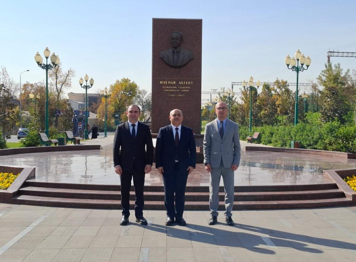 Академический национальный драматический театр уже подписал меморандумы о сотрудничестве с Национальным театром Грузии имени Шота Руставели, Национальным академическим театром Беларуси имени Янки Купалы, Национальным академическим драматическим театром Кыргызстана имени Т. Абдумомунова и Александринским театром России. В рамках визита Ильхам Аскеров встретился с Чрезвычайным и Полномочным Послом Азербайджана в Узбекистане Гусейном Гулиевым. Посол высоко оценил шаги, предпринимаемые Академическим национальным драматическим театром в области международных связей. Послу была предоставлена подробная информация о меморандумах, подписанных с различными театрами, а Гусейн Гулиев отметил, что посольство окажет всемерную поддержку дальнейшему развитию культурных связей между двумя странами, включая театральное сотрудничество. К бюсту Великого Лидера Гейдара Алиева, установленному в Парке Гейдара Алиева в Ташкенте, были возложены цветы в знак глубокого уважения и признания его выдающихся исторических заслуг. Ильхам Аскеров также встретился с директором Азербайджанского культурного центра имени Гейдара Алиева в Узбекистане Акифом Марифли и подробно ознакомился с деятельностью центра. В ходе беседы стороны обсудили перспективы сотрудничества и достигли договоренности о проведении в 2026 году совместных мероприятий между Культурным центром и Национальным драматическим театром, включая образовательные мастер-классы по различным театральным и художественным направлениям. 25 октября в Академическом национальном драматическом театре Узбекистана состоялся спектакль по оперетте «Аршин мал алан» великого композитора Узеира Гаджибейли в исполнении узбекских артистов, а также встреча с Азимом Муллахановым, директором Музыкального театра Узбекистана. Затем азербайджанская делегация деятелей искусств отправилась в Самарканд, - один из древнейших городов Узбекистана, где состоялась встреча Ильхама Аскерова с Искандером Султановым, директором Самаркандского музыкально-драматического театра. Также состоялось посещение мавзолеев Амира Теймура, первого президента Узбекистана Ислама Каримова и Ходжи Данияра. Примечательно, что в следующем году запланированы взаимные гастроли двух театров братских республик.