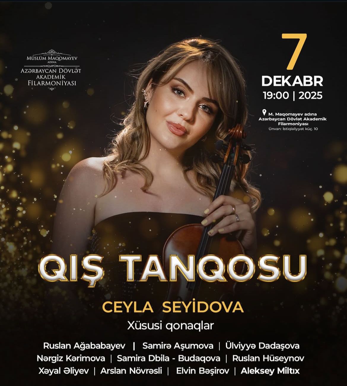 7 декабря в 19:00 в зале Азербайджанской государственной академической филармонии имени Муслима Магомаева состоится концерт под названием «Зимнее танго» заслуженной артистки, лауреата международных конкурсов Джейлы Сеидовой. Вечер будет посвящен творчеству одного из наиболее влиятельных композиторов XX века - Астора Пьяццолы, чьи произведения навсегда изменили традиционное представление о танго, превратив его в сложную и многогранную музыкальную форму, где встречаются классическая гармония, джазовые импровизации и ритмическая экспрессия.