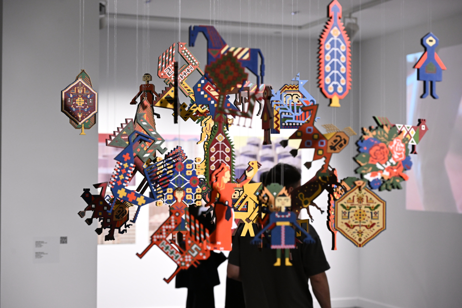 Независимая художница Кафия Эйвазова в этом году участвует в фестивале с работой «Взгляд из окна». «Я участвую в фестивале уже три года, и в первый раз представляю работу в технике ковра. Произведение соткано в технике ворсового ковра и призывает людей задуматься о структуре семьи. Здесь может показаться, что мужские мотивы словно защищают женские, однако они ограничивают их. Постепенно черты лица женщины исчезают, потому что ограничение отодвигает личность человека на задний план и делает ее невидимой. Работа призывает наше общество ценить женщин, прислушиваться к ним и не ограничивать их свободу».