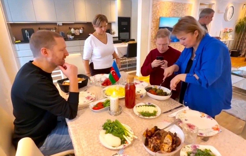Гостеприимной хозяйкой выступила основатель и директор сети детских садов Butaland в Стокгольме Самира Гусейнова. Вместе с сестрой Наилей и ее дочерью Айсель она принимала Эрика у себя дома, угощая его традиционными блюдами. За столом блогер попробовал бадымджан долмасы и коронное блюдо национальной кухни — плов. Вечер завершился традиционным чаепитием с национальными сладостями, абрикосовым вареньем и партией в нарды.