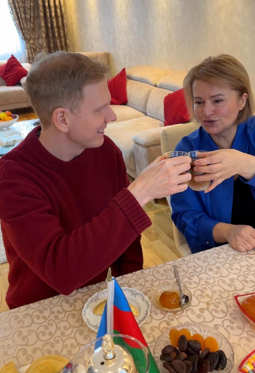 В беседе с корреспондентом АЗЕРТАДЖ Эрик поделился своими впечатлениями от азербайджанской кухни, а Самира ханым, в свою очередь, рассказала о выборе блюд.