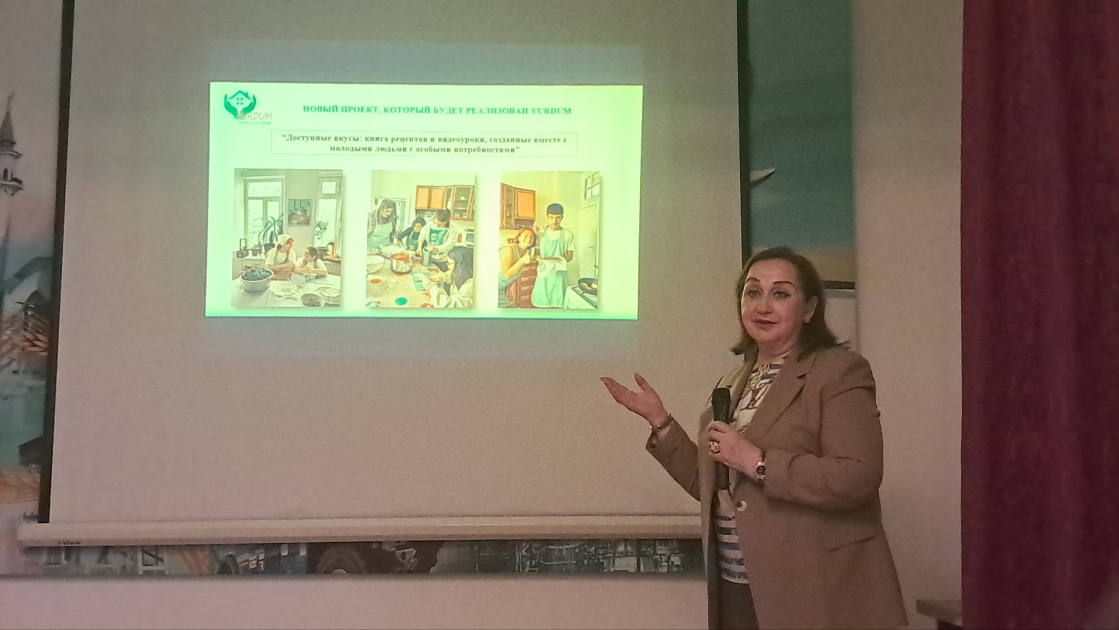 В начале мероприятия был представлен проект социальной экодеревни Yurdum, реализуемый в рамках деятельности НПО Humayun. Основатель проекта Зарема Ягизарова рассказала о работе инклюзивного дневного центра, его миссии, основных направлениях деятельности, а также о значении инклюзивных инициатив, направленных на поддержку, развитие и социализацию людей с инвалидностью.