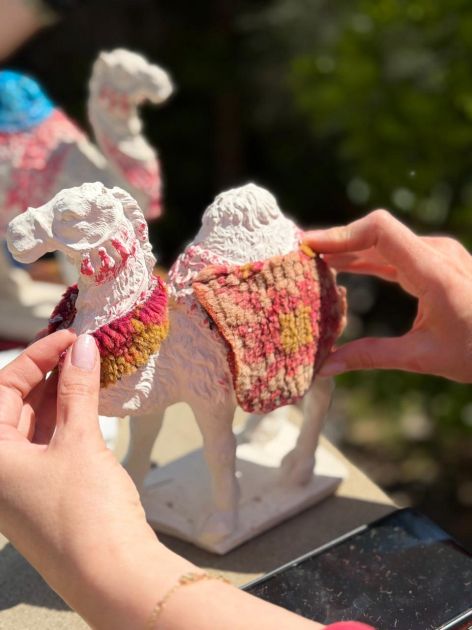 Выбор этой формы оказался концептуально точным. Верблюд, как символ Шелкового пути, отсылает к многовековой истории обмена - не только товарами, но и идеями, образами, эстетическими кодами. В данном случае он стал своеобразным медиатором между эпохами и культурами, на поверхность которого художницы «перенесли» традиционные ковровые орнаменты, переосмыслив их в трехмерном пространстве.