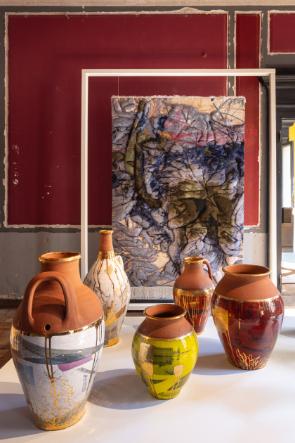 Керамические образцы, входящие в серию «Вне функциональности», представлены как логический итог экспериментальных поисков художницы в таких видах как гончарное дело и стеклодувное декоративно-прикладное искусство. Эти керамические сосуды, опираясь на традиционные ремесленные корни, формируются как повседневные предметы, используемые в быту, и преобразуются художницей в уникальные, изящные дизайнерские объекты. Такой подход к материалам не только органично связывает произведения с физической средой, но и создает на их поверхности неповторимые, изменчивые и непредсказуемые, живые визуальные эффекты. В то же время эта серия, обращающаяся к поэзии материи и памяти, выстраивает тонкий, поэтичный диалог между древними традициями и современным самовыражением художницы. Ссылаясь на свой обширный фотоархив, посвященный азербайджанским пейзажам, Аида Махмудова с помощью техники деколь переносит сделанные ею кадры на керамические поверхности, запечатлевая в произведениях личные воспоминания и искренние истории. В результате ритуальные формы этих сосудов перерождаются в глубокие пристанища, хранящие в себе самые сокровенные воспоминания. Эти простые, но отличающиеся формы воплощают текучесть времени, подобно молчаливым свидетелям символических поворотных точек в личной, сокровенной и рефлексивной карте человеческого сердца.