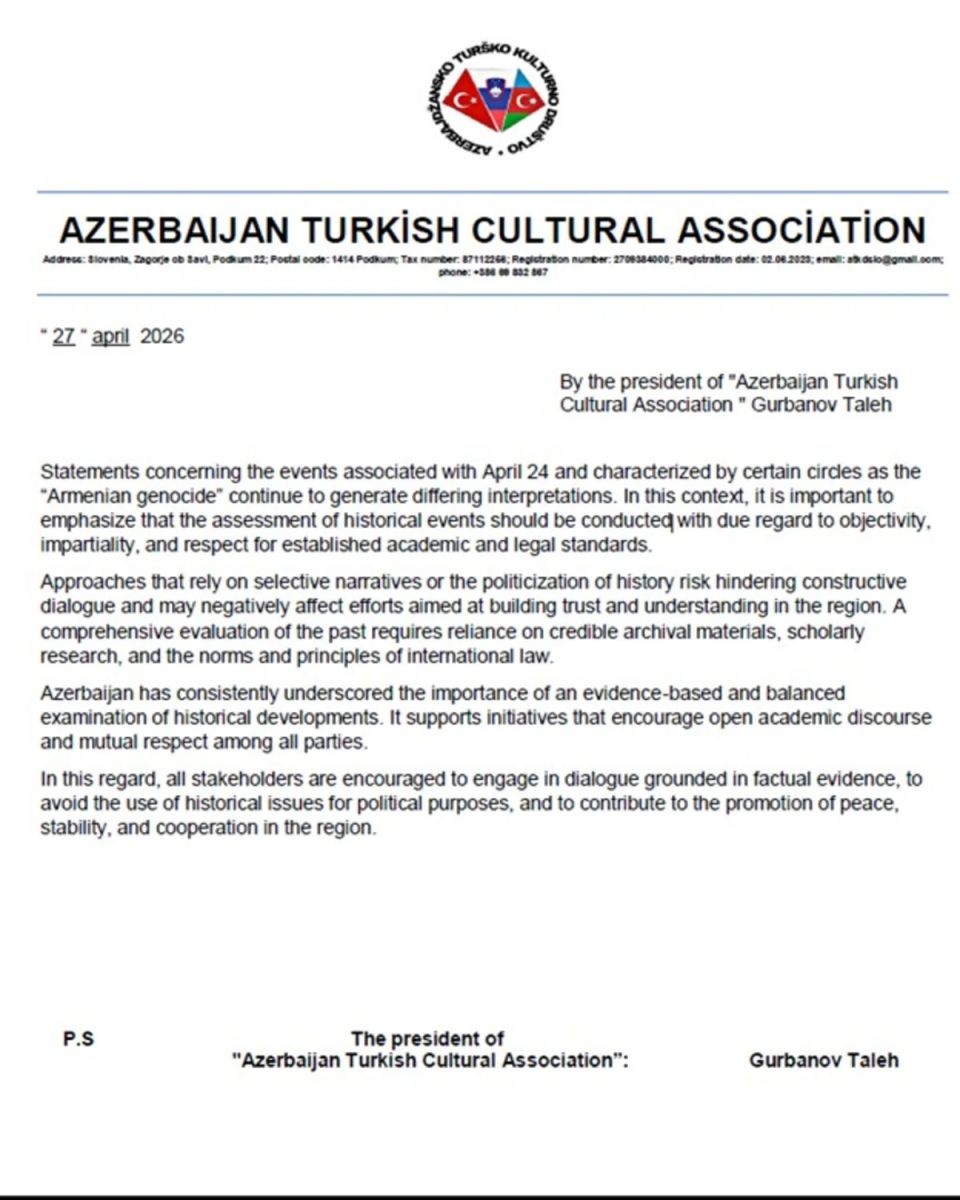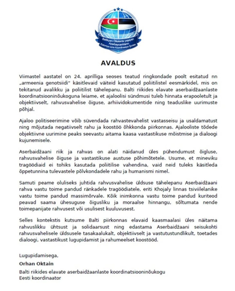 Обращение подписали представители азербайджанских организаций, действующих в разных странах Европы.