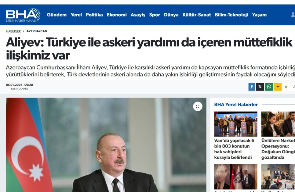 Как сообщает АЗЕРТАДЖ, телеканалы, новостные агентства и газеты братской страны акцентировали внимание на словах азербайджанского лидера о значимости оборонного сотрудничества в рамках Организации тюркских государств, а также высказываниях Президента Ильхама Алиева относительно углубления союзнических связей с Турцией.