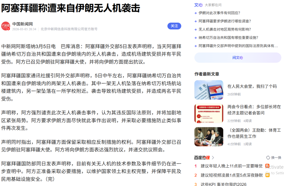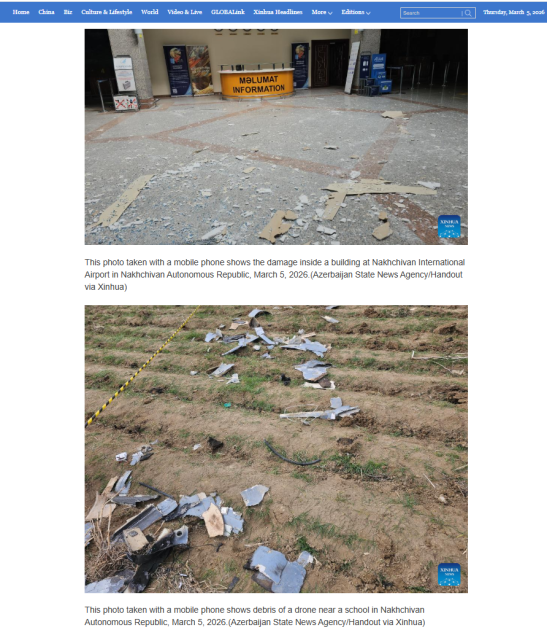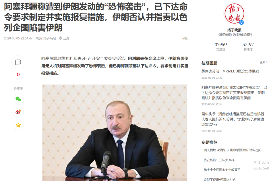 Китайские медиа распространили информацию об атаке беспилотников (БПЛА) на Нахчыванскую Автономную Республику со стороны Исламской Республики Иран и заявления Президента Ильхама Алиева, сказанные на заседании Совета безопасности.