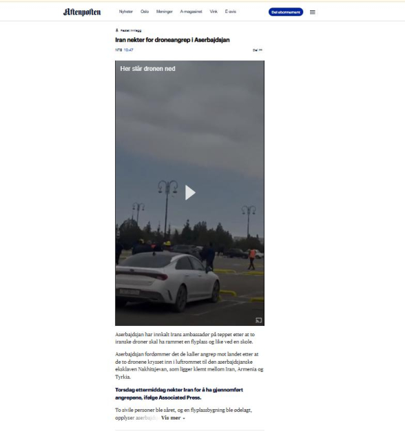 Норвежское издание Aftenposten сообщает, что Азербайджан вызвал посла Ирана для объяснений после инцидента с беспилотниками в Нахчыване.