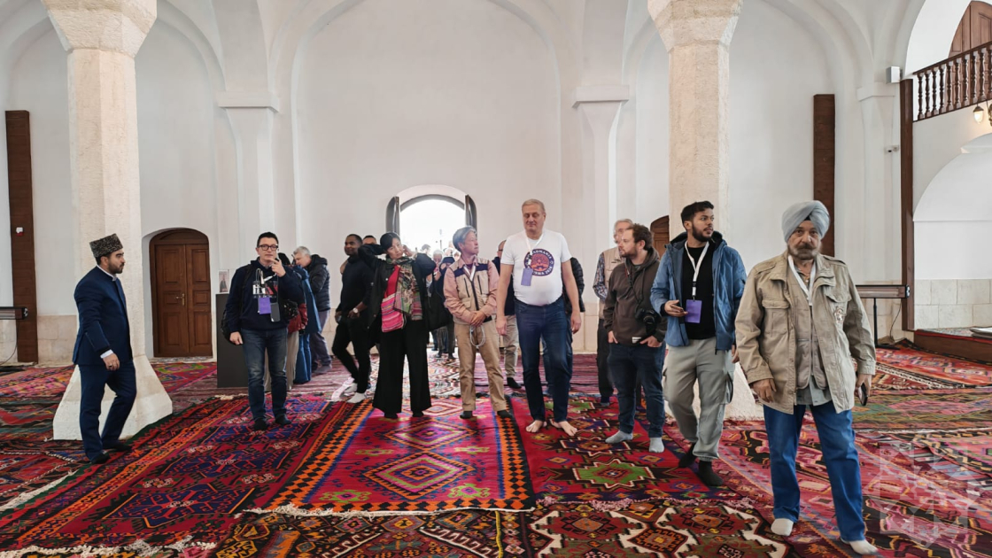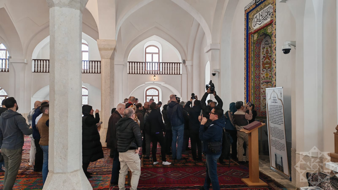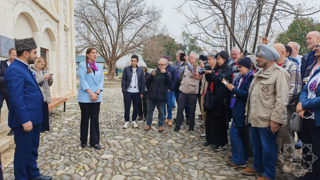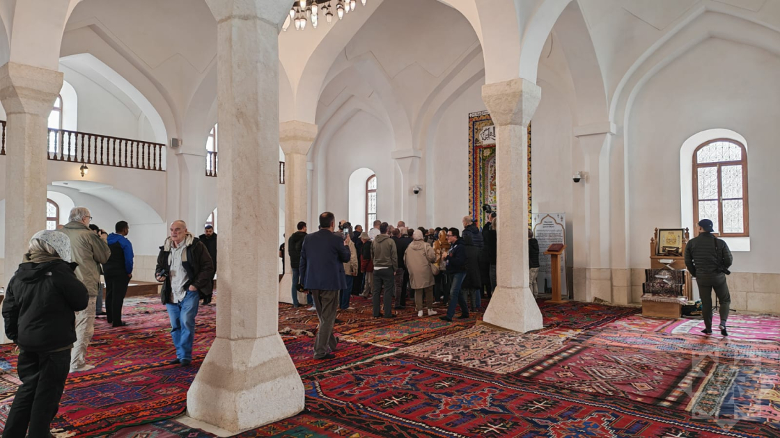 Как сообщает региональный корреспондент АЗЕРТАДЖ, сначала международные путешественники ознакомились с Агдамской городской Джума-мечетью. Сотрудник Специального представительства Президента предоставил им информацию о мечети. Было отмечено, что мечеть, возведенная в 1868–1870 годах, как и другие историко-религиозные памятники, подверглась вандализму. После освобождения города Агдам от оккупации мечеть была восстановлена Азербайджанским государством.