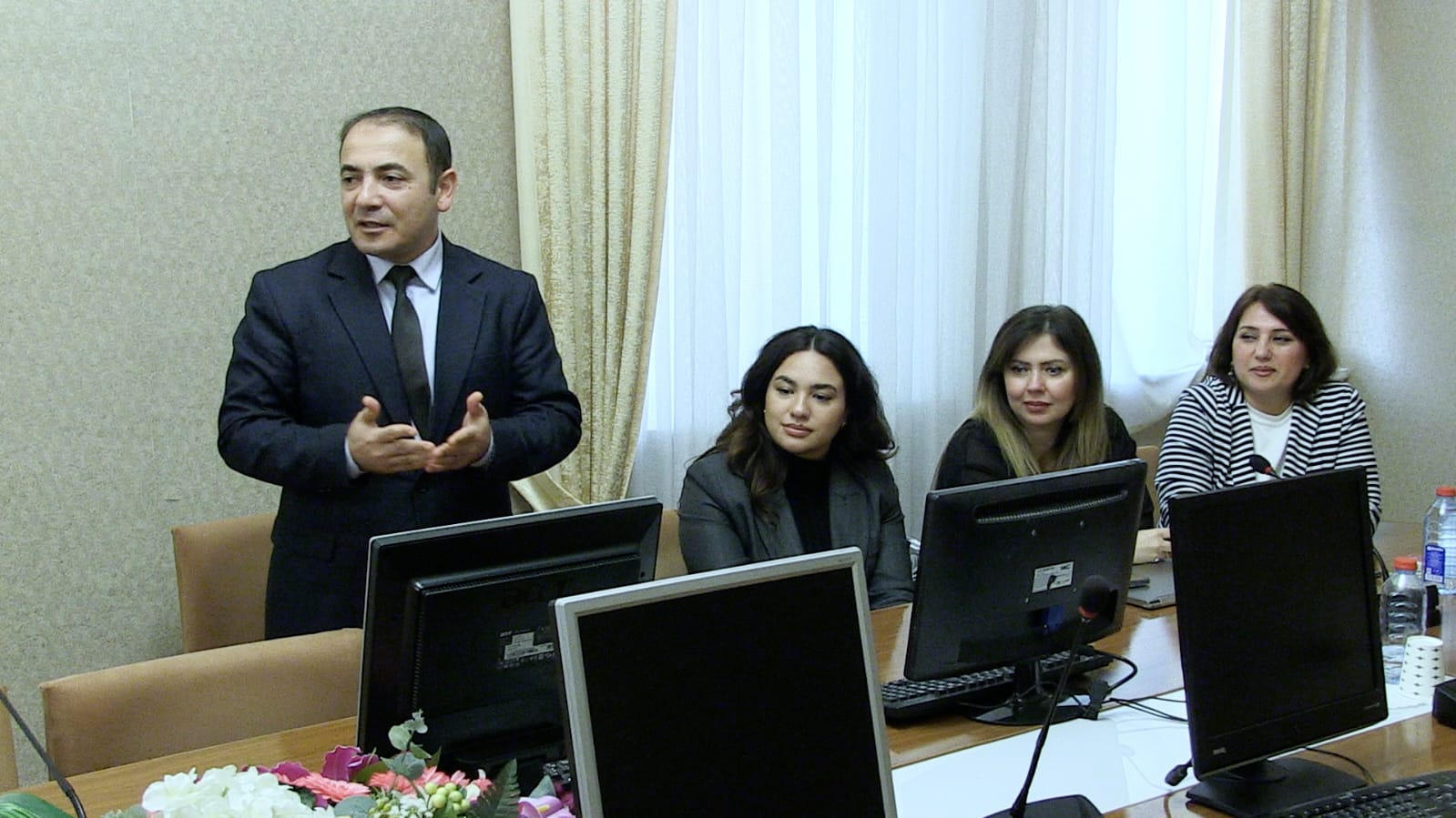 До начала заседания участники ознакомились с деятельностью подразделения, реализуемыми проектами и текущими инициативами в сфере цифровизации, о чем подробно рассказал заведующий отделом цифровизации, искусственного интеллекта и электронных услуг Гянджинского отделения Фархад Мирзоев.