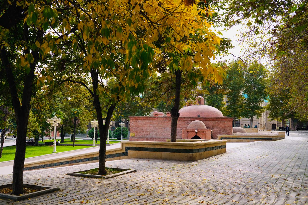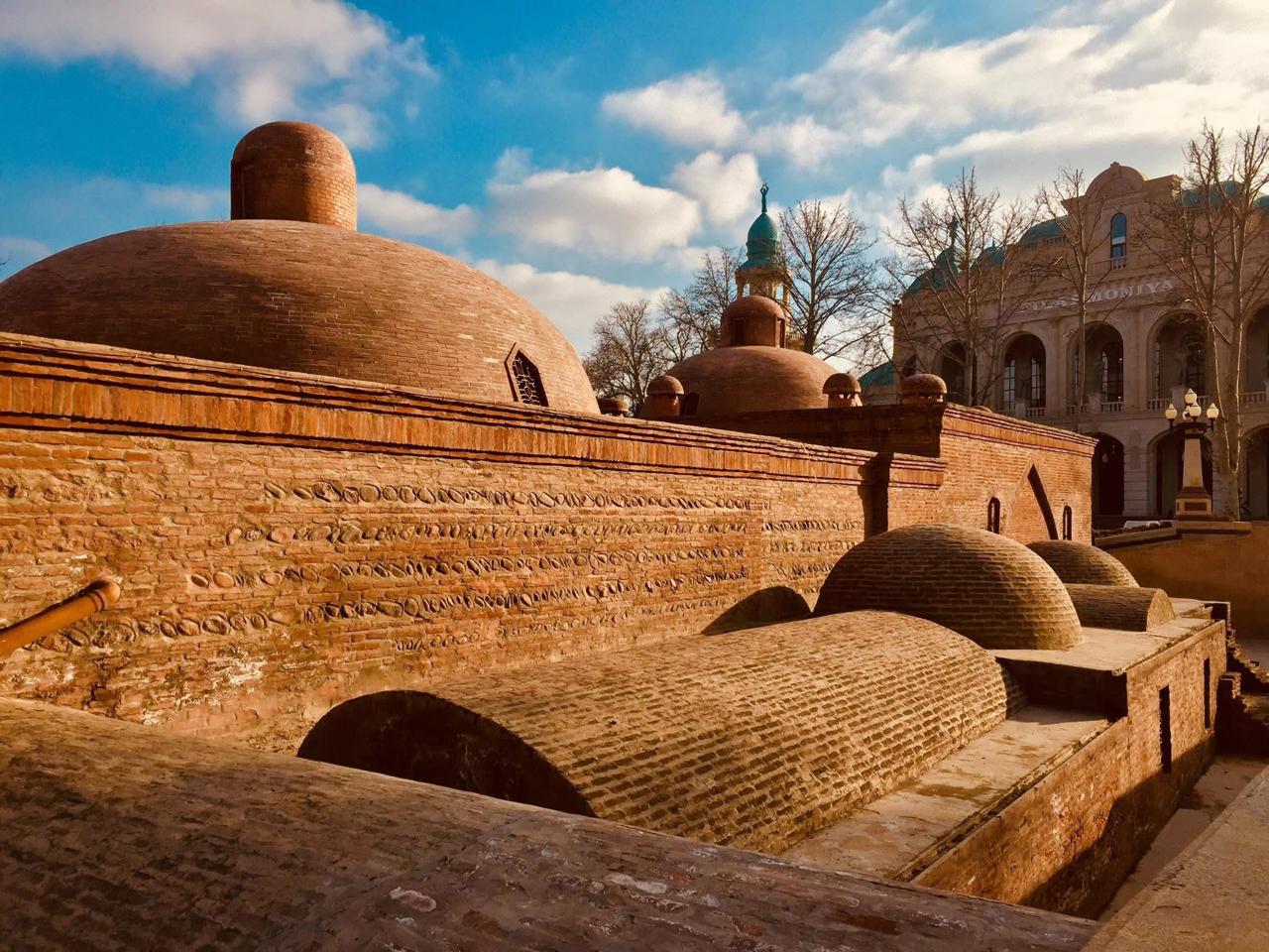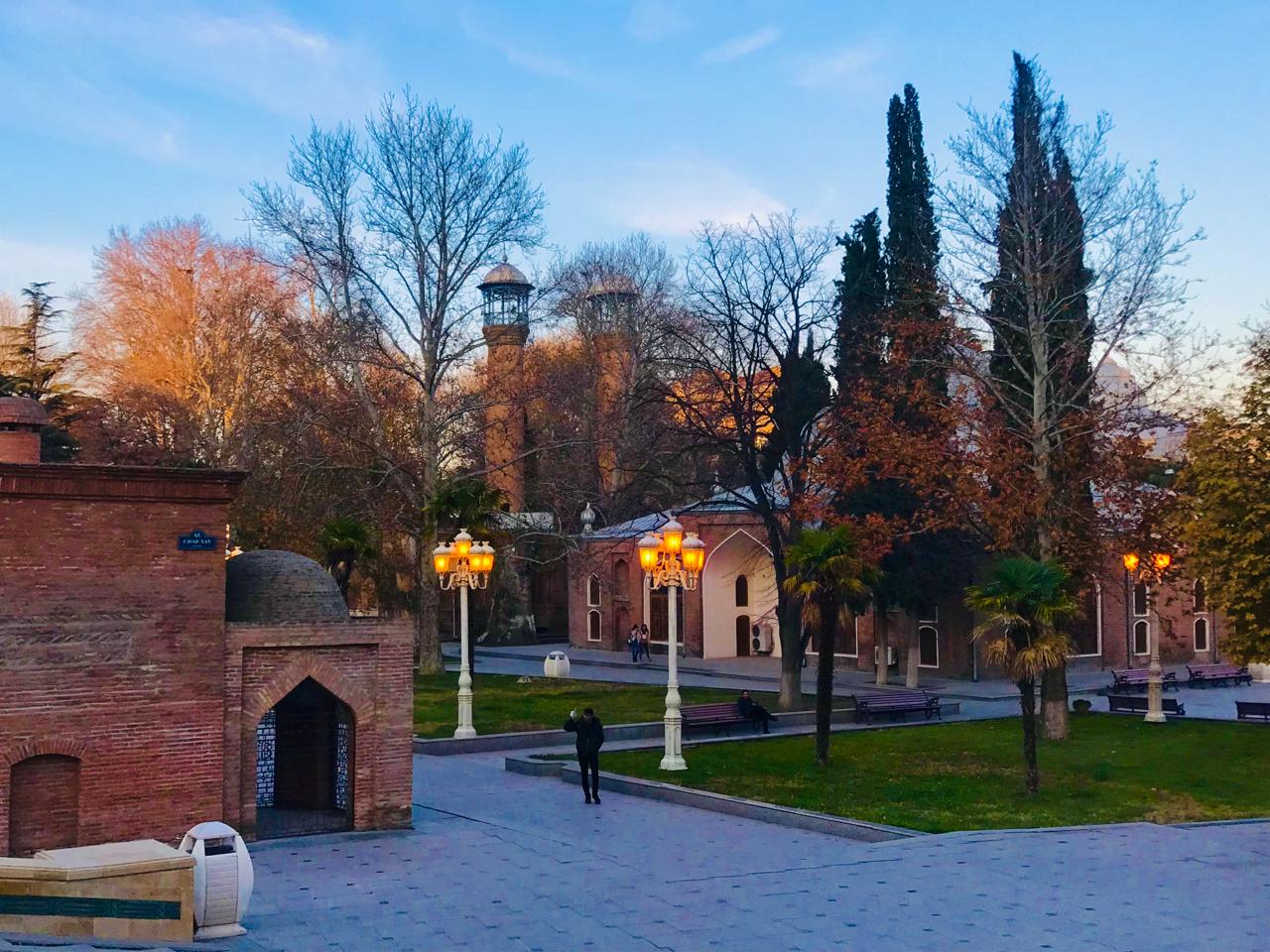 В свое время это был своеобразный комплекс, в который входили сама мечеть, медресе, один из самых красивых в Азербайджане караван-сараев и баня (Чокек хамам).
