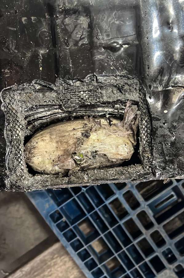 Во время стандартной проверки на стационарной рентгеновской установке специалисты обратили внимание на подозрительные очертания внутри аккумулятора, расположенного в прицепе. Это стало основанием для проведения детального таможенного досмотра.