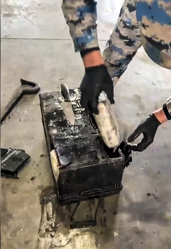 В ходе досмотра внутри аккумулятора были обнаружены 6 пакетов с метамфетамином общим чистым весом 5 кг 254,397 г.