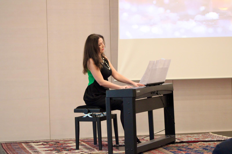 Далее было представлено музыкальное произведение, посвященное памяти жертв Ходжалы. Профессор по фортепиано Академии Баренбойма-Саида в Германии, преподавательница Дома культуры «Харыбюльбюль» Нигяр Садыгова исполнила произведения известных композиторов.