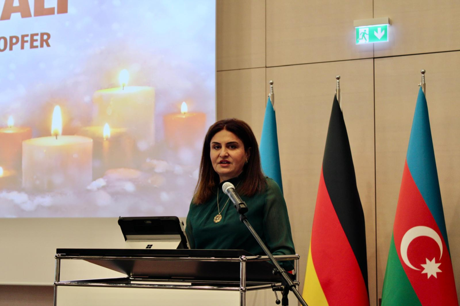 В своем выступлении посол Азербайджана в Германии Насими Агаев отметил, что Ходжалинская трагедия стала первым геноцидом, совершенным в Европе после окончания Холодной войны. Он напомнил, что всего за одну ночь были зверски убиты 613 невинных людей, 1275 мирных жителей попали в плен, а судьба 150 человек до сих пор неизвестна.