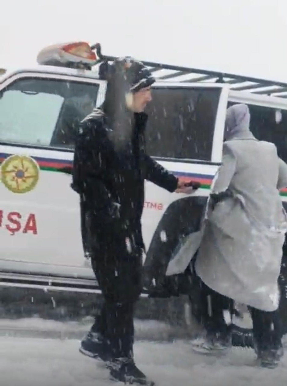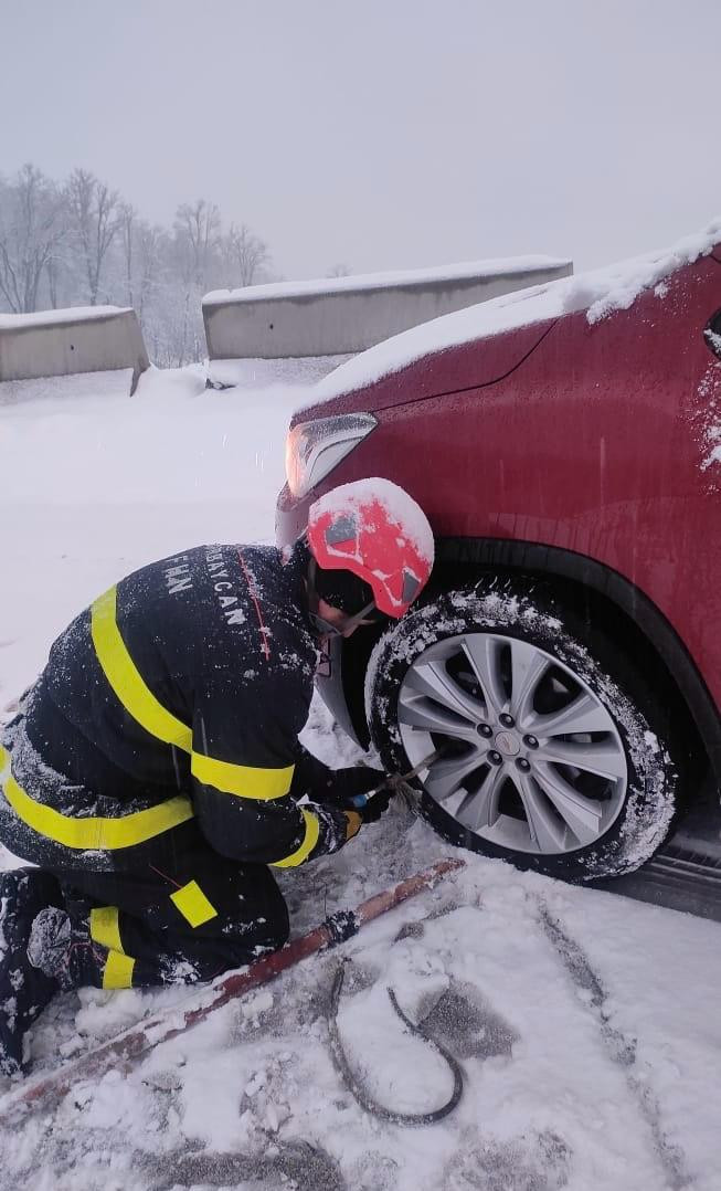 В Ходжалинском районе, на участке Дороги Победы, проходящем через территорию села Бахарлы, из-за обледенения дорожного покрытия граждане оказались в беспомощном положении в своих автомобилях.