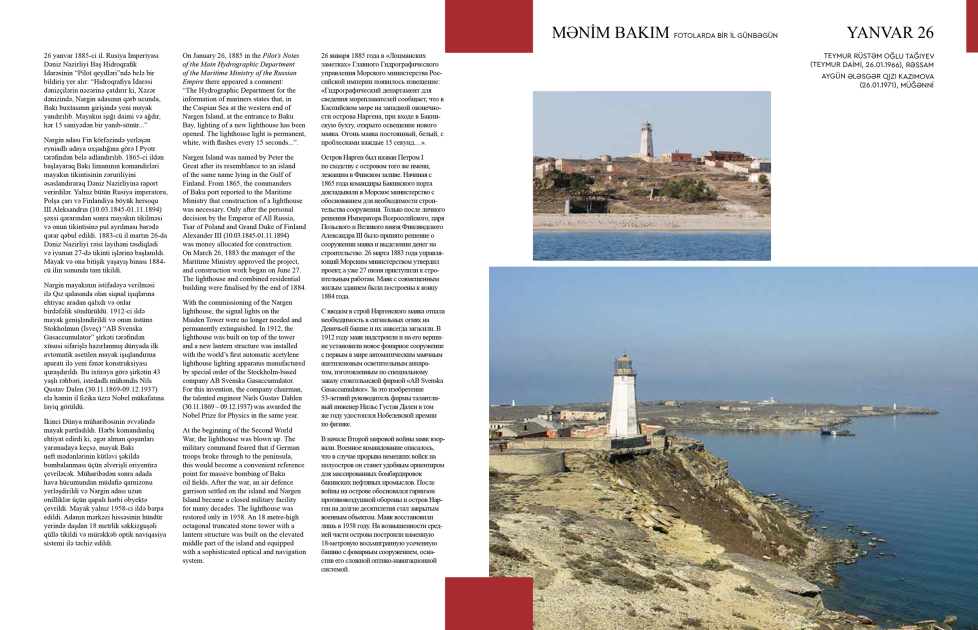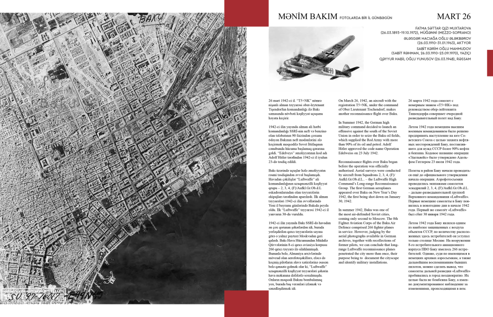 По словам архитектора, листая книгу, читатель может перенестись на десятилетия назад и узнать, что происходило в Баку в этот самый день. «Будь то прилет первого Ту-144, футбольный матч «Нефтчи» – «Арарат», первый концерт выдающегося русского композитора Сергея Рахманинова или другие знаковые события из истории нашего города», - сказал он.