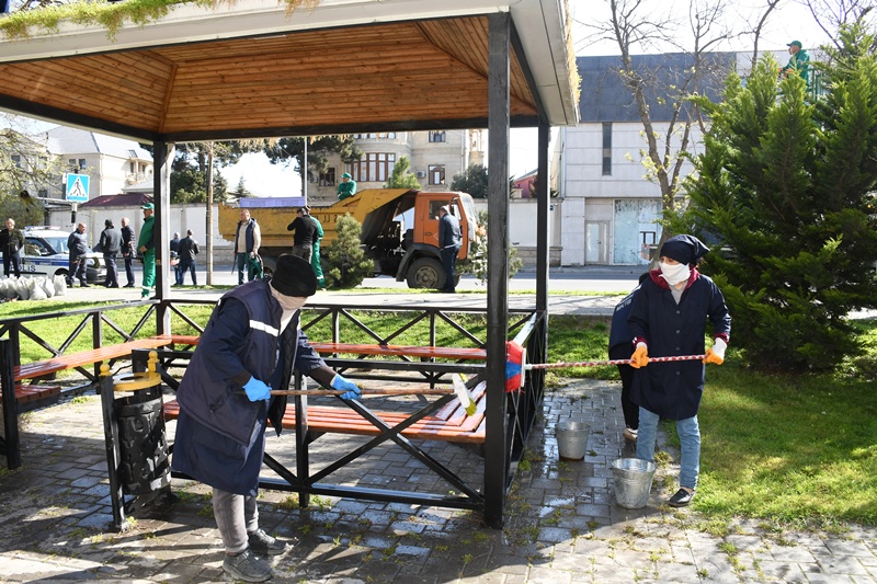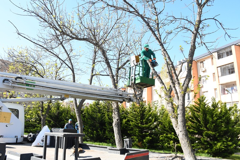 Сотрудники Объединение зелёного хозяйства города Баку в течение дня занимались очисткой деревьев и зелёных насаждений от пыли, проводили агротехнический уход, а также обрезку повреждённых ветвей. Одновременно высаживались сезонные цветы и создавались декоративные цветочные композиции.