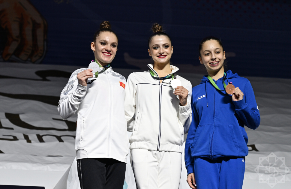 Как сообщает БР, в заключительный день соревнований представительница Азербайджана Фидан Гурбанлы завоевала серебряную медаль в упражнениях с мячом, а Говхар Ибрагимова — бронзовую медаль в упражнениях с обручем.