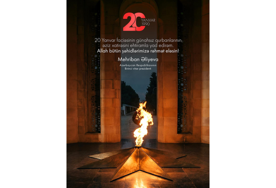 Первый вице-президент Азербайджанской Республики Мехрибан Алиева поделилась в своих аккаунтах в социальных сетях публикацией в связи с 36-й годовщиной трагедии 20 Января.